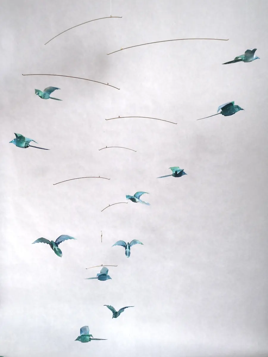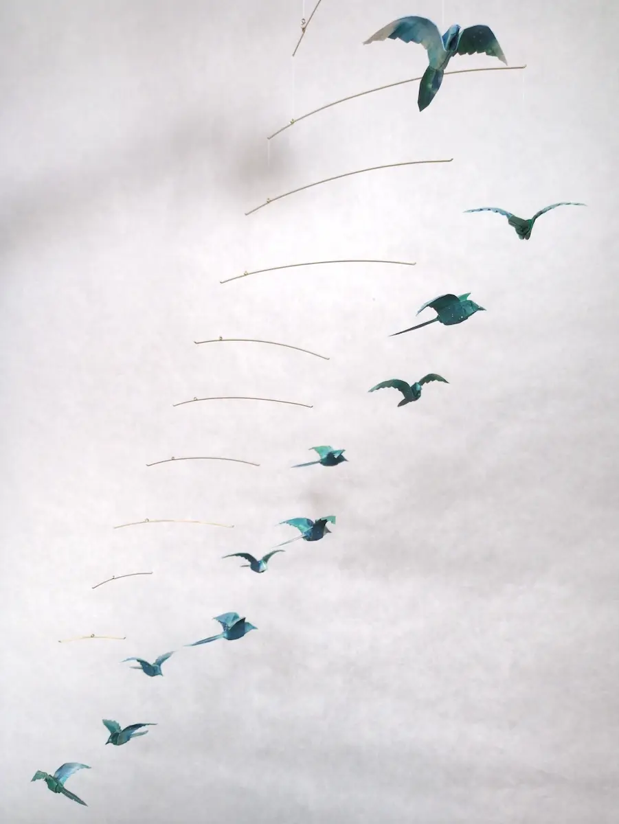 ○ An additional 250 cm of nylon thread and a brass hook is included for hanging the mobile.